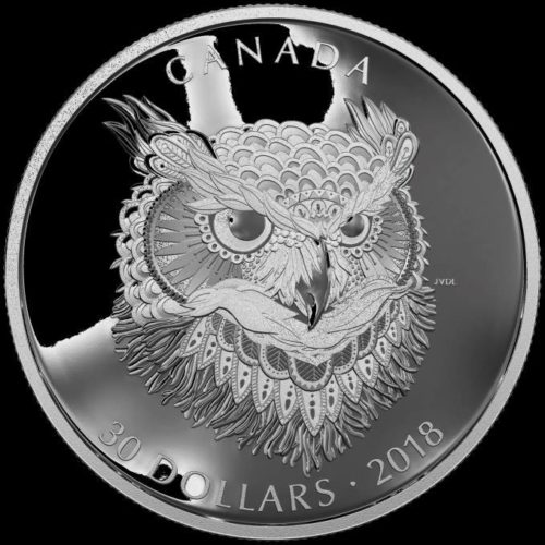 2018 $30 FINE SILVER COIN ZENTANGLE ART: THE GREAT HORNED OWL [165667]