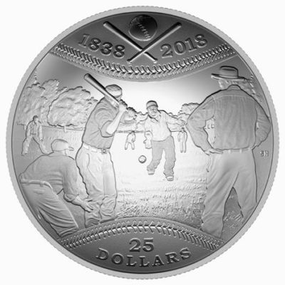 2018 $25 FINE SILVER COIN 180TH ANNIVERSARY OF CANADIAN BASEBALL [164434]
