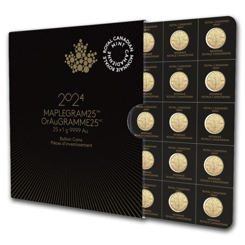 2024 25x 1 gram Gold Maple Leafs Maplegram25™ (In Assay Sleeve)