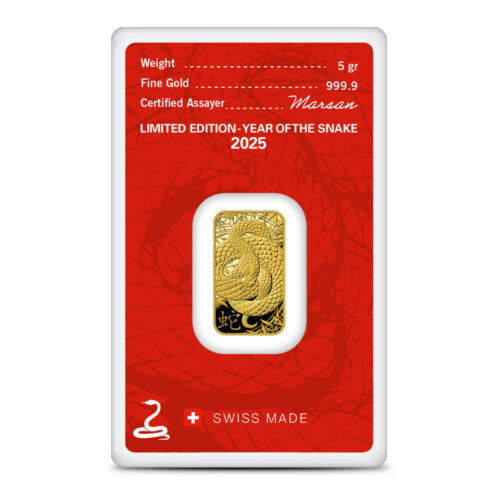 5 gram 2025 Lunar Year of the Snake Gold Bar – Argor Hereaus