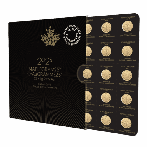 2025 25x 1 gram Gold Maple Leafs Maplegram25™ (In Assay Sleeve)