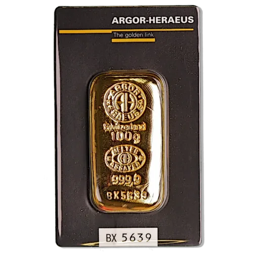 100 Gram Argor-Heraeus Swiss Cast Gold Bullion Bar