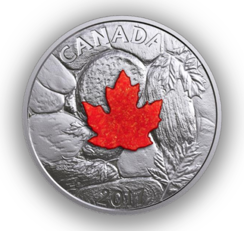 2017 $20 FINE SILVER COIN MAJESTIC MAPLE LEAVES WITH DRUSY STONE