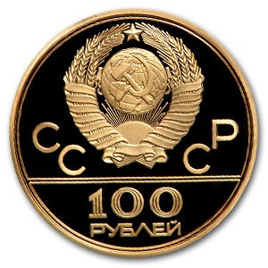1978 Russia Gold 100 Roubles Olympic Waterside Stand