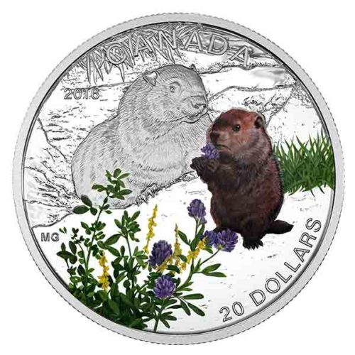 1 oz. Pure Silver Coloured Coin: Baby Animals: Woodchuck (2016) [153776]
