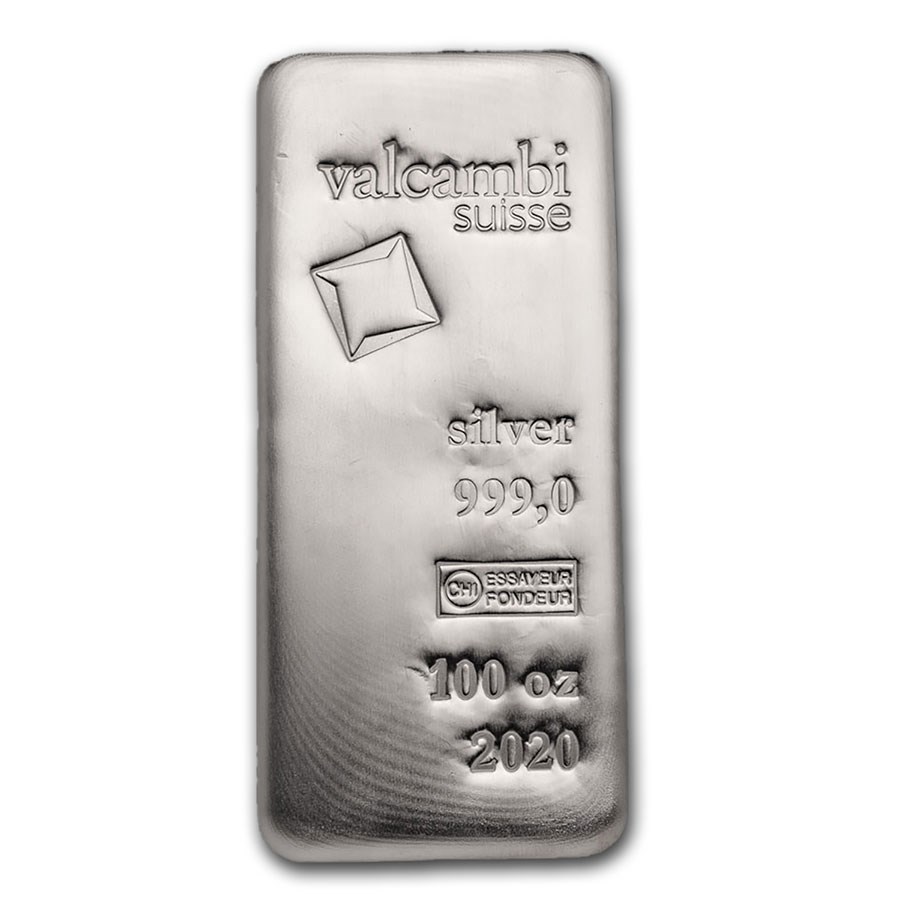 100 Oz Silver Cast/Poured Bar – Valcambi Suisse