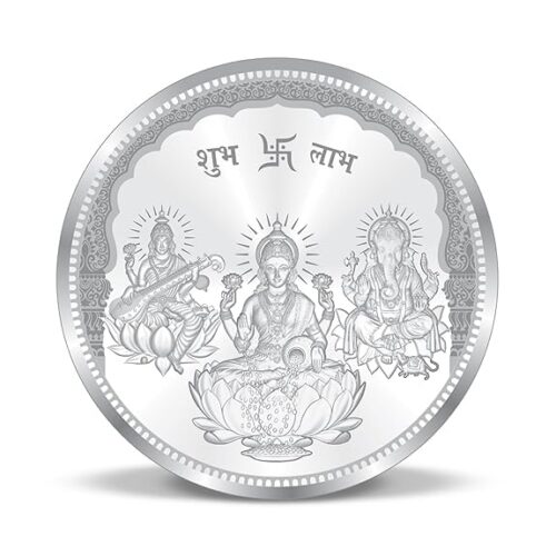 100 gram Lakshmi Ganesh & Saraswati Pure Silver Diwali Festival Coin