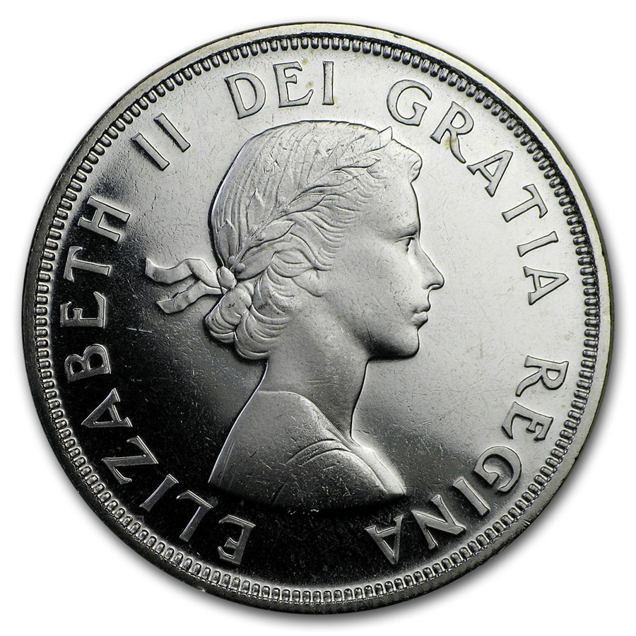 Canadian Dollars issued in commemoration of Charlottetown, Quebec. A mintage of 7,296,832 coins adds to the collectibility of this issue.
