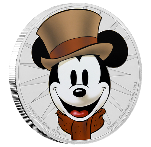 Your coin features an image of Mickey Mouse with his hat and scarf from Mickey’s Christmas Carol (1983).