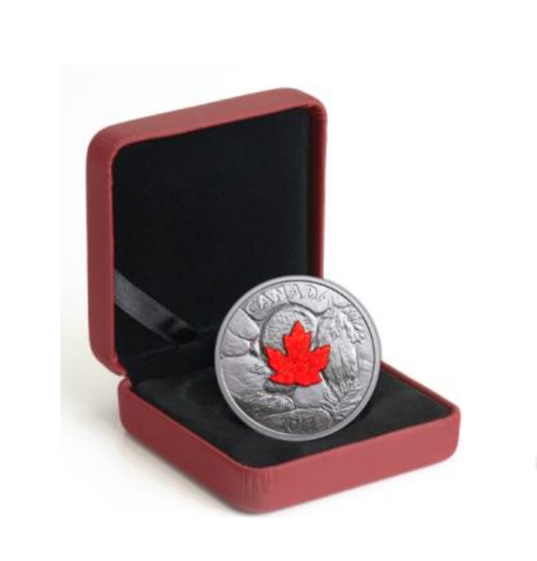 A maple leaf is a poignant symbol that represents 150 years of history and achievements— especially when emblazoned in one of Canada’s official colours. This 1 oz. fine silver coin is a poignant celebration of Canada and its natural beauty, through an engraved scene that provides a timeless backdrop to the distinctively shaped and colourful drusy semi-precious stone.