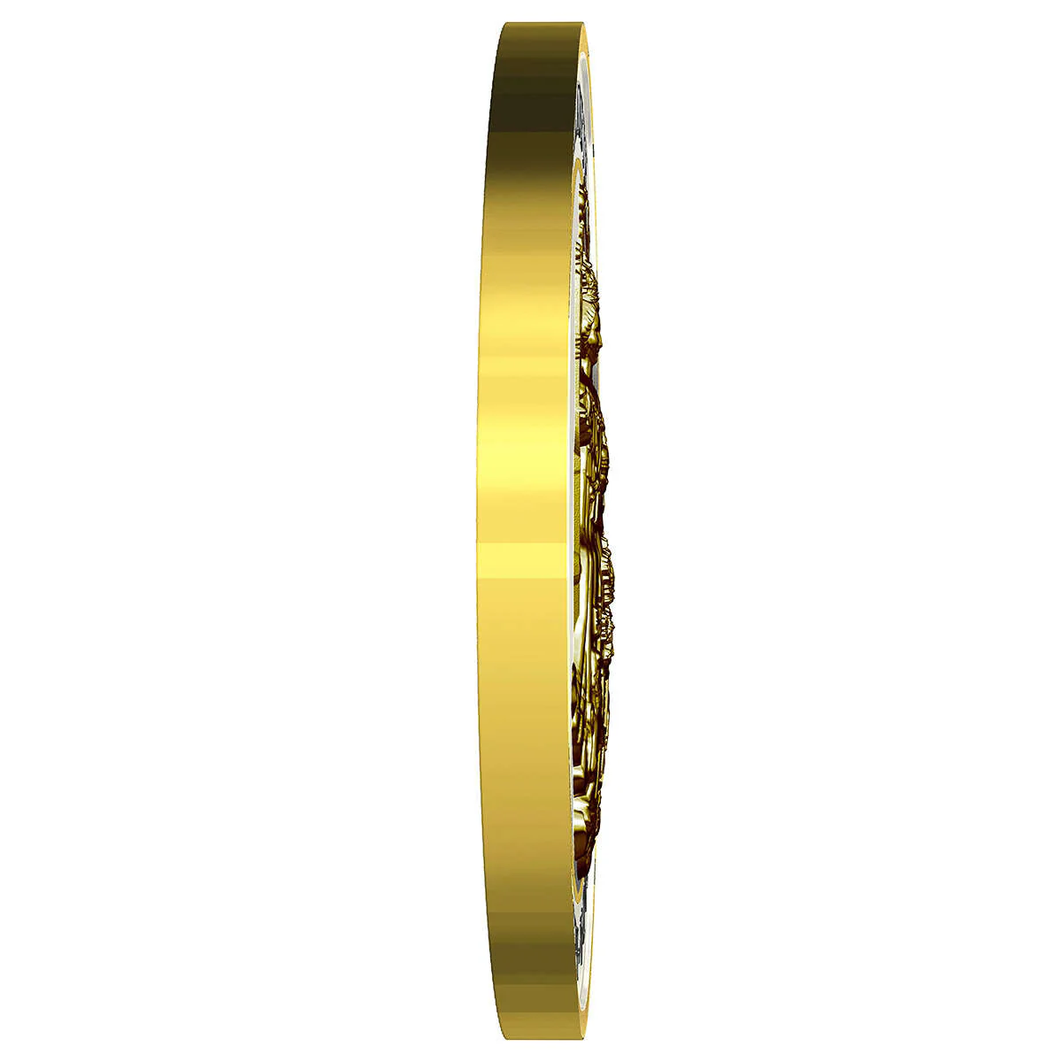 The reverse design represents the current Great Seal of Canada, which was struck by the Royal Canadian Mint in 1952. Engraved in ultra-high relief, the robed figure of Her Majesty Queen Elizabeth II is enthroned on the Coronation Chair in Westminster Abbey, and holds the orb and sceptre in her hands. Framed by a band bearing the bilingual inscription “REINE DU CANADA – ELIZABETH II – QUEEN OF CANADA”, the embossed image basks in the golden hue of selective gold plating, which also adds an elegant touch to the rim on both the obverse and reverse.