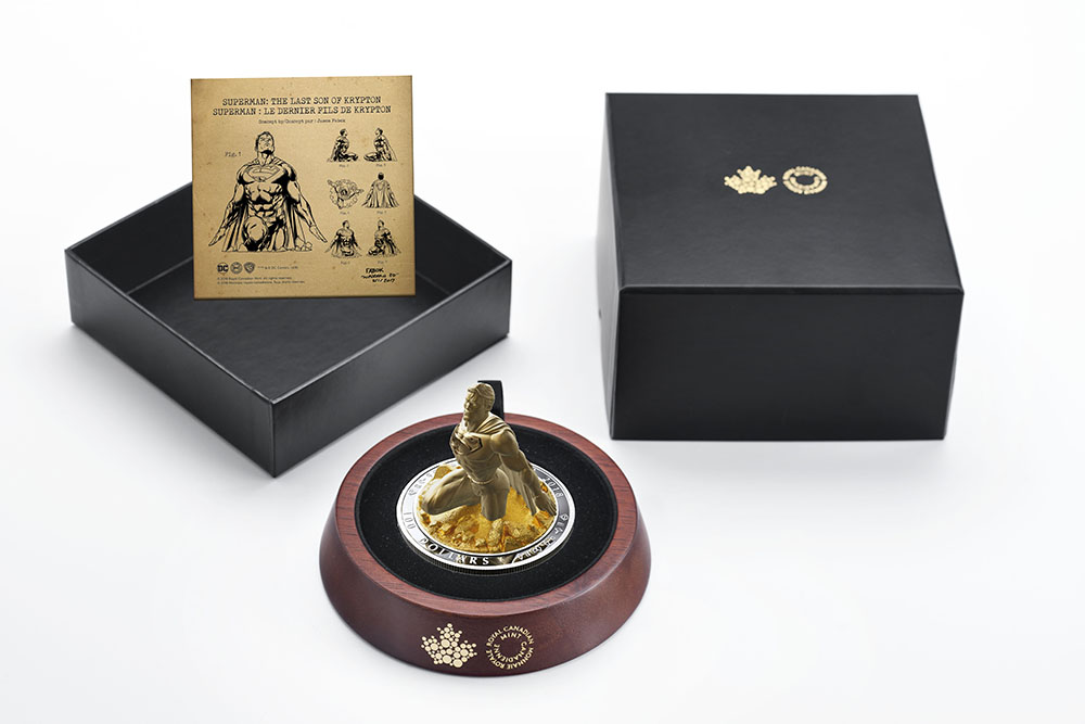 After years of appearing on our coins, Superman finally breaks out of this coin’s reverse, where, for the first time ever, the beloved pop culture icon is re-imagined in sculptural form! The gold-plated, silver statuette on the reverse is not only a beautifully sculpted ode to the paragon of virtue — 2018 $100 Fine Silver Sculpture Coin Superman ™: The Last Son Of Krypton is a nod to all the Canadian talent who have played a part in his incredible journey.