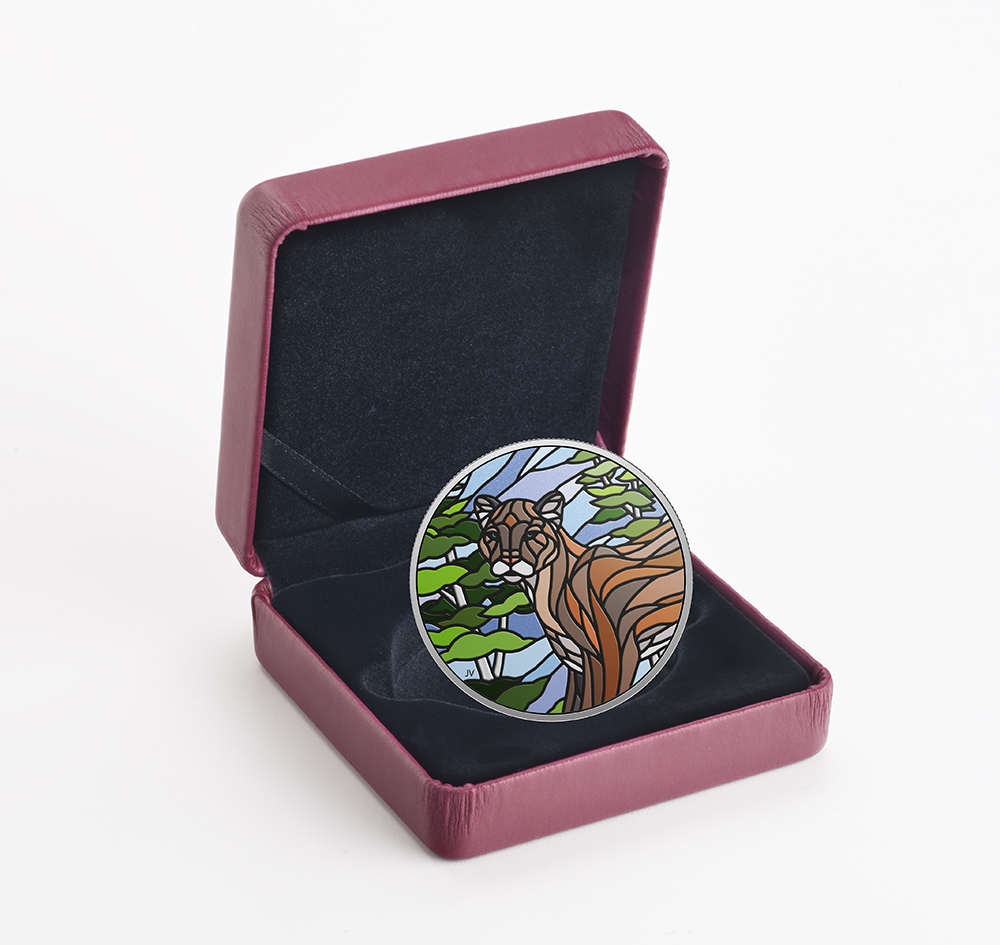 Canada’s largest wild feline is a rare sight in the forests of Western Canada — but only because of its secretive nature. 2018 $20 Fine Silver Coin Canadian Mosaics – Cougar is the third coin in our Canadian Mosaics series which offers a chance encounter with a tan-coloured cougar on its reverse, where, even in mosaic form, the big cat is the image of agility and strength in the wild.