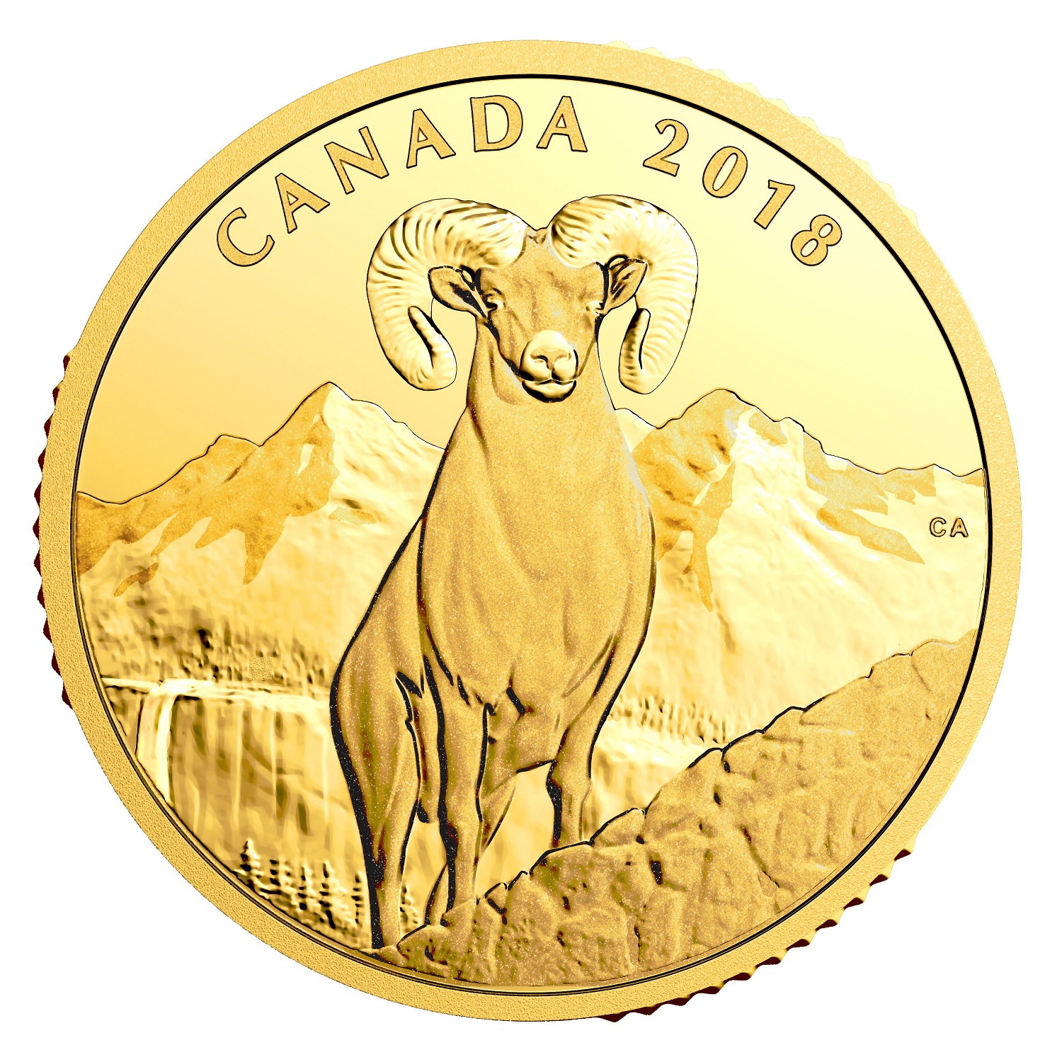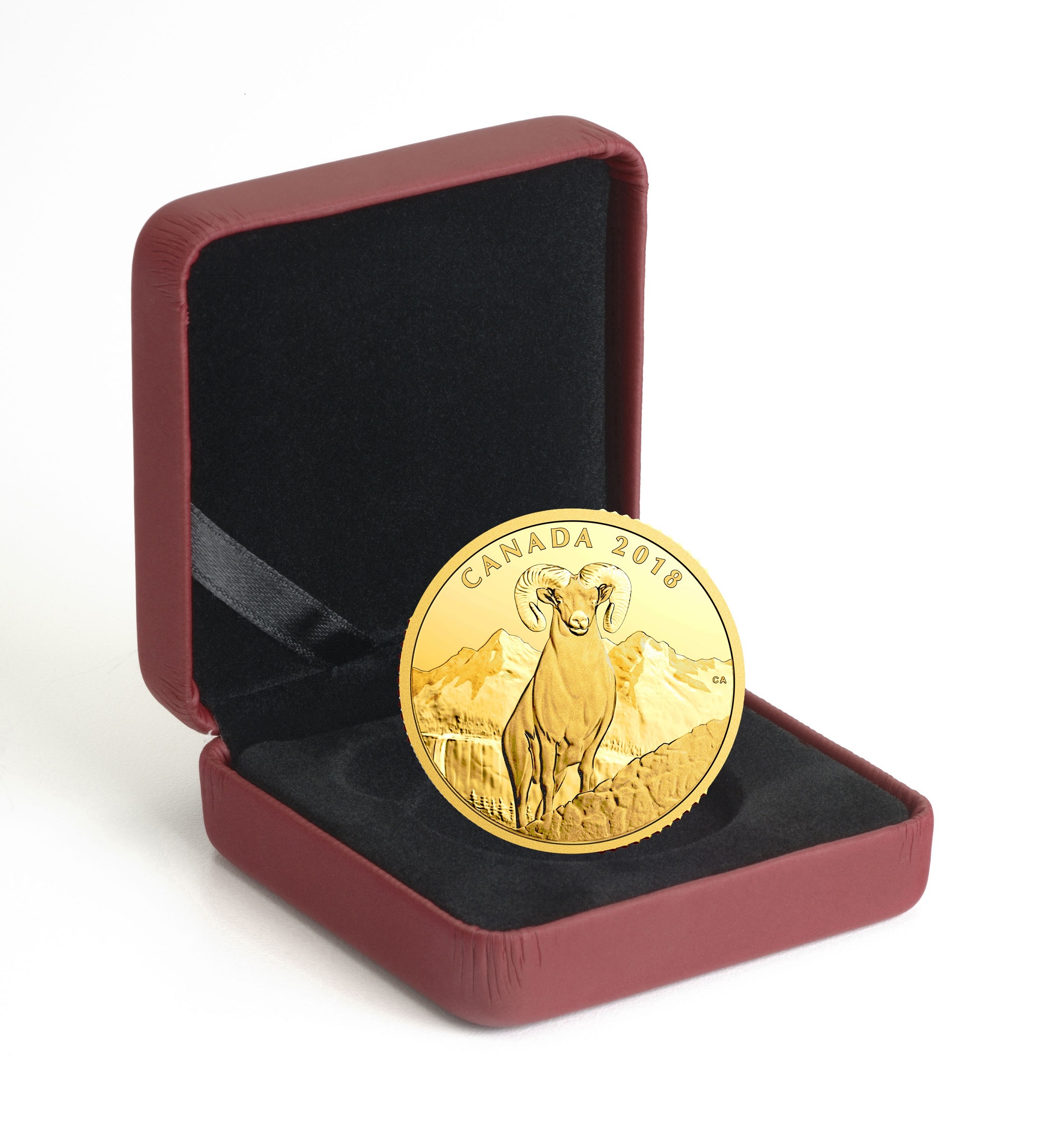 At home in the rangelands of the Canadian Rocky Mountains, the bighorn sheep is the embodiment of the rugged alpine wilderness it inhabits. The ram’s formidable curved horns endow it with dignified nobility on this .99999 pure gold coin, where its ability to ascend to seemingly impossible heights is the essence of true conquest.