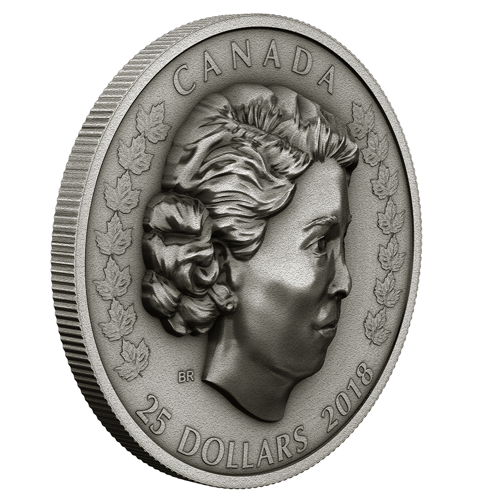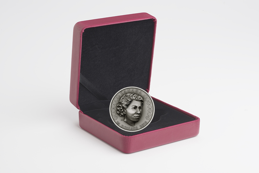 Her Majesty Queen Elizabeth II is the first monarch to be crowned ‘Queen of Canada’ and it is our first time to portray her on a repoussé-inspired coin. Queen Elizabeth’s portrait is robust, its relief rising over 5mm from the surface of the coin. 2018 $25 Fine Silver Coin – Her Majesty Queen Elizabeth Ii: The New Queen is the second of three coins in this incomparable subscription celebrating Canada’s beloved monarch—an esteemed royal who is respected throughout the world for her legacy of duty, devotion and forward-thinking leadership.