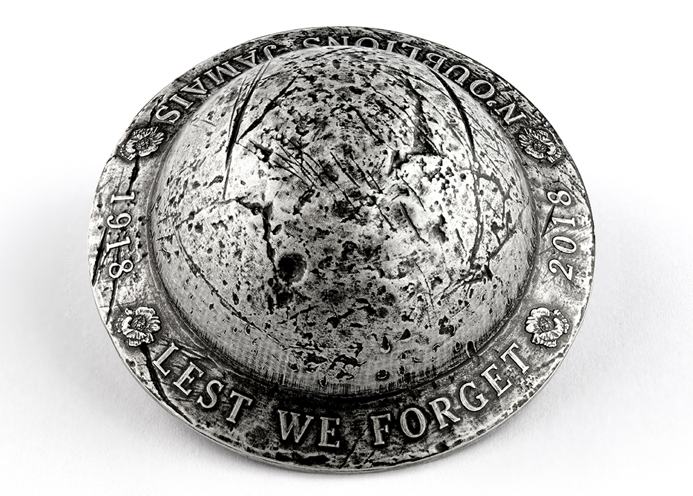 - A POWERFUL TRIBUTE TO COURAGE AND SACRIFICE: The small-scale replica of the steel helmet worn by Canadian soldiers in the First World War is a heartfelt tribute to their legacy, echoed in the poppy-flanked words engraved along the brim: “LEST WE FORGET N’OUBLIONS JAMAIS”.