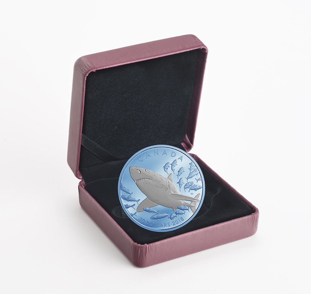 For years, the great white shark (Carcharodon carcharias) has been cast as an object of fear when in truth, it is a fascinating ancient species and one of the oldest life forms on Earth. This $30 coin shines the spotlight on a legendary yet mysterious oceanic predator, whose northern range stretches into Canadian waters off the Atlantic and Pacific coasts.