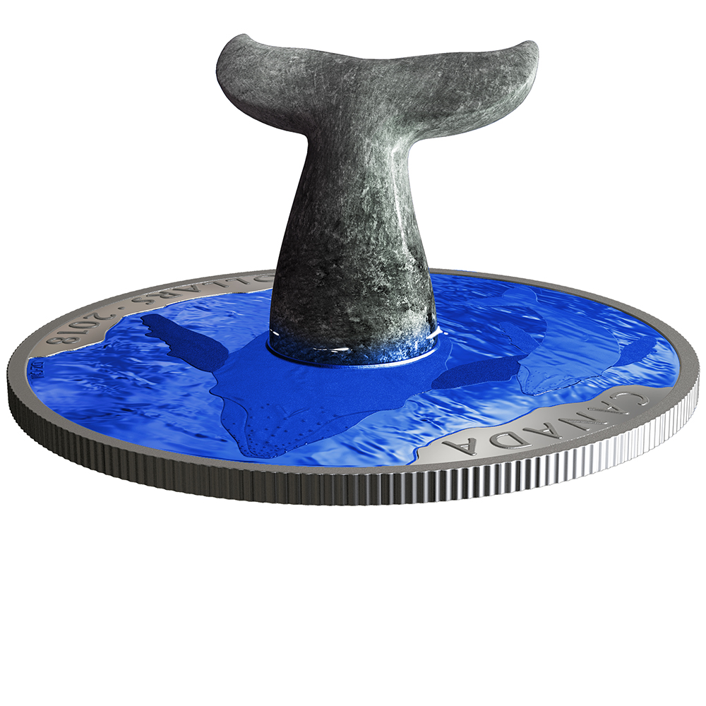 - HAND-CARVED CANADIAN SOAPSTONE: Rising up from the coin’s surface, the smoothly sculpted whale’s tail is hand-carved by Canadian artist Dave Zachary and his team of sculptors.