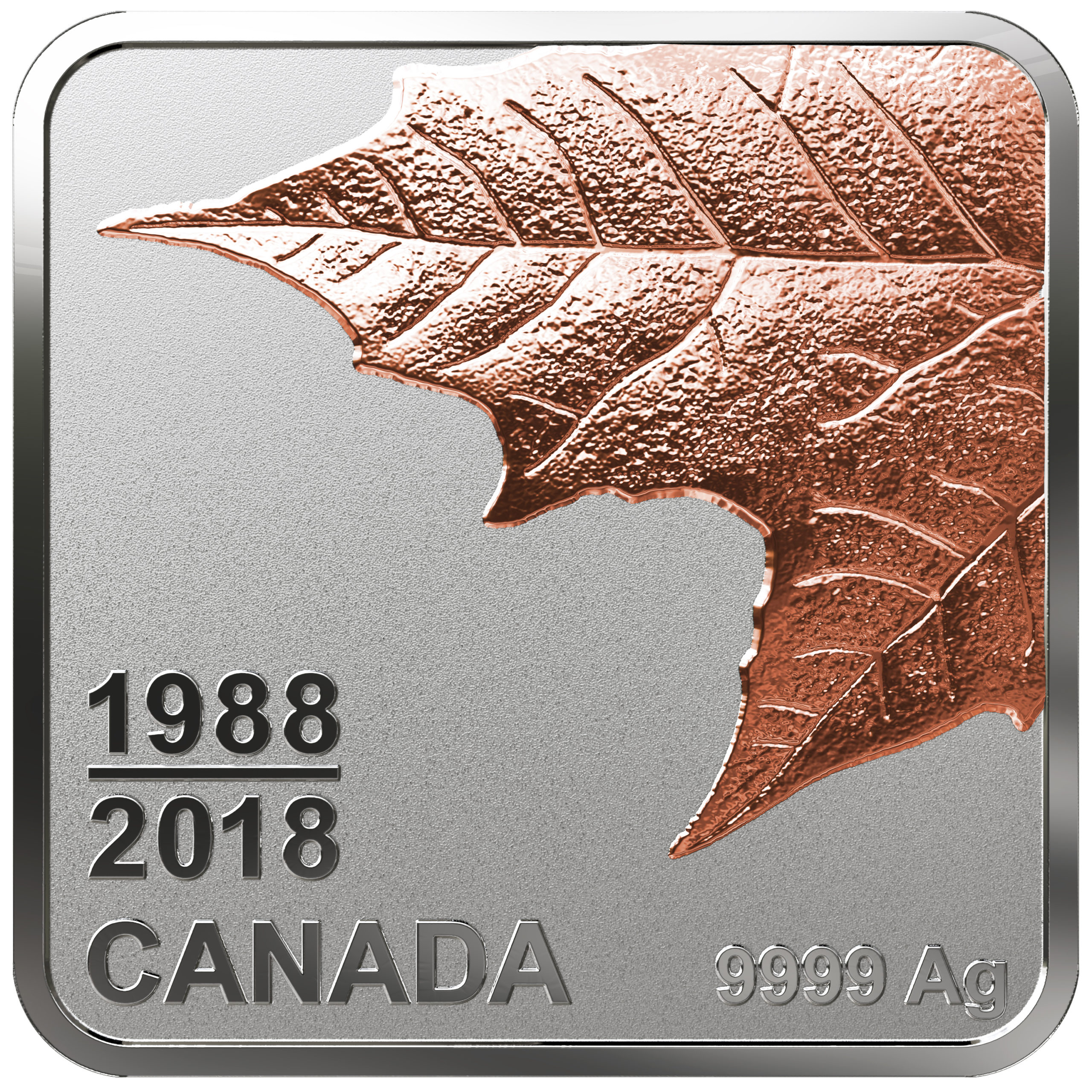 - SILVER AND ROSE GOLD: The reverse proof finish places the focus ‘squarely’ on the brilliant leaf, which is elegantly enhanced by the selective use of rose gold plating—as is the effigy on the obverse.