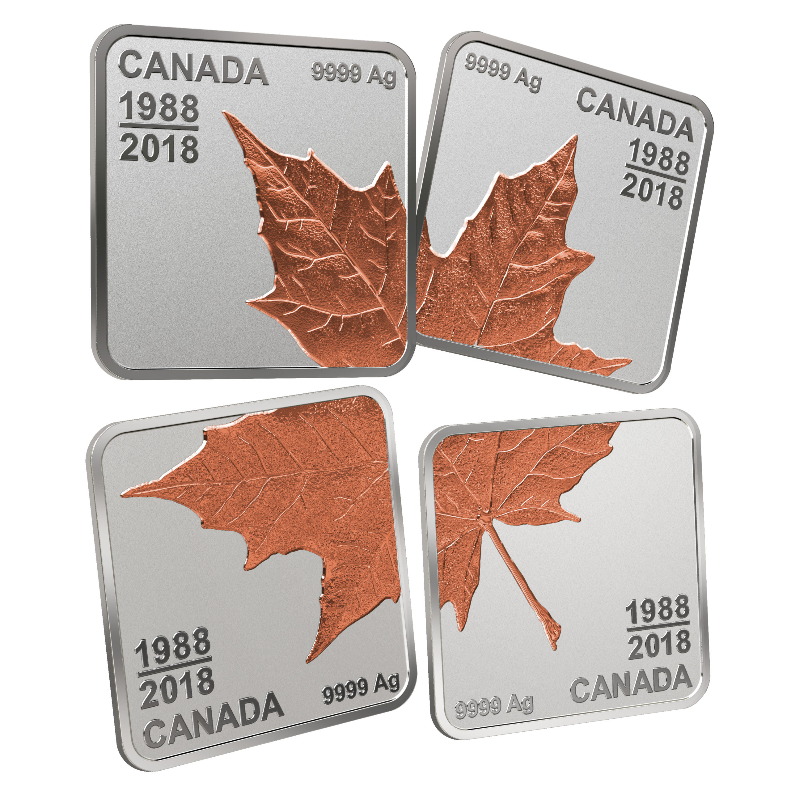 COME TOGETHER TO CELEBRATE: This quartet set is a special tribute to 30 years (and counting) of an icon: our Silver Maple Leaf bullion coin.