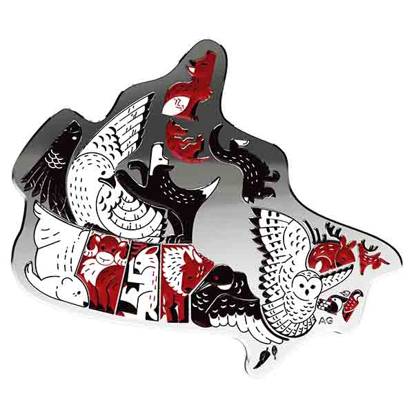 This proudly patriotic piece is our latest innovation. Inspired by Canada’s geography, the coin’s contour wraps around the edges of the colour-over-engraved map of Canada, which is every bit as extraordinary as its 99.99% pure silver canvas.