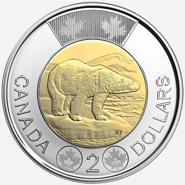 2 dollars | Three-ply nickel finish plated steel (outer ring) Three-ply brass finish plated aluminum bronze (inner core) | 6.99 | 28 | Interrupted serrations |