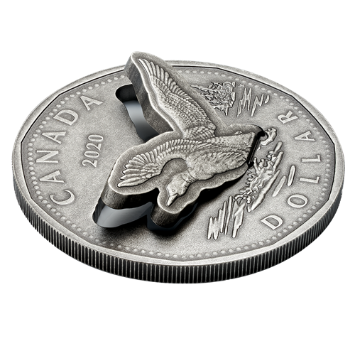 The latest innovation from our R&D lab raises the bar when it comes to dimensional design and allows the engraved focal point to reach new heights—literally. Introducing Lifted Engraving, a numismatic first that makes its world debut on this limited-edition prototype. The ground breaking technology is a 3D approach to 2D coin art. It allows us to highlight a key design element by raising it above the engraved surface of the coin. To demonstrate its full potential, the never-before-seen technique has been applied to this 2020 pure silver version of the 1997 Flying Loon dollar. The loon you see lifting up from the coin’s surface is not an embellishment—it’s part of the coin. And so is the integrated hinge, which provides just the right amount of lift for our loon, and our new technology, to take flight on this prototype.