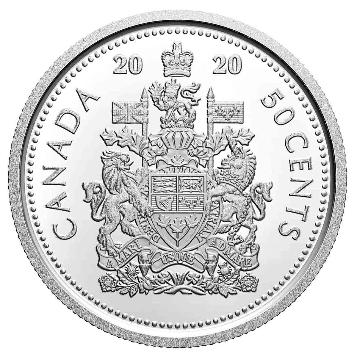 This 2020 limited edition proof set continues the tradition presenting the highest quality coins of each denomination issued in pure silver, plus a special issue commemorative silver dollar. Denominations include the 5 cent re-creation of the 1945 Victory nickel, 10 cent, 25 cent, 50 cent, loon style dollar, VE Day commemorative silver dollar and 2 dollar coins. The three highest denomination coins are further enhanced with a selective overlay of 24 karat gold. Mintage is limited to just 15,000.