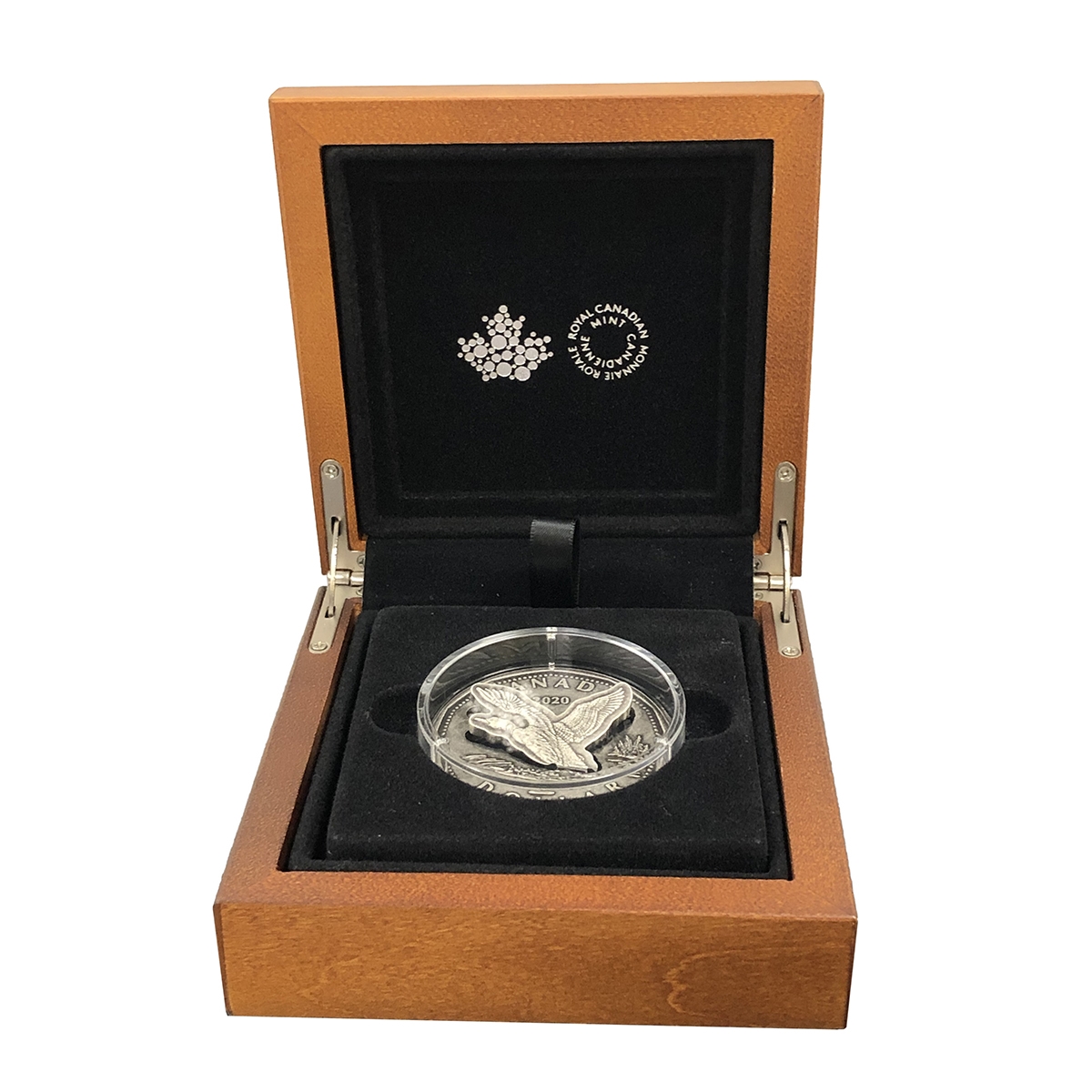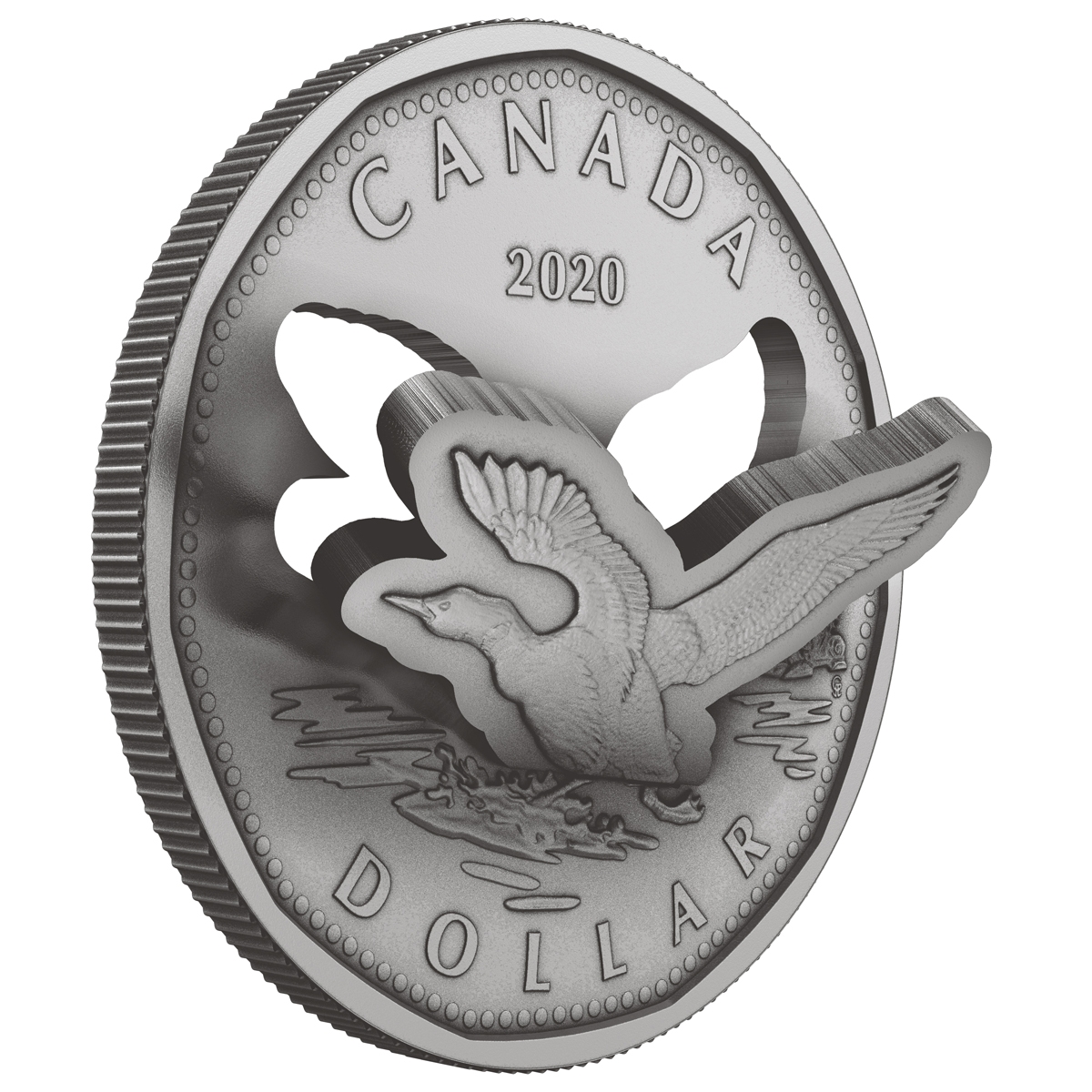 The latest innovation from our R&D lab raises the bar when it comes to dimensional design and allows the engraved focal point to reach new heights—literally. Introducing Lifted Engraving, a numismatic first that makes its world debut on this limited-edition prototype. The groundbreaking technology is a 3D approach to 2D coin art. It allows us to highlight a key design element by raising it above the engraved surface of the coin. To demonstrate its full potential, the never-before-seen technique has been applied to this 2020 pure silver version of the 1997 Flying Loon dollar. The loon you see lifting up from the coin’s surface is not an embellishment—it’s part of the coin. And so is the integrated hinge, which provides just the right amount of lift for our loon, and our new technology, to take flight on this prototype.