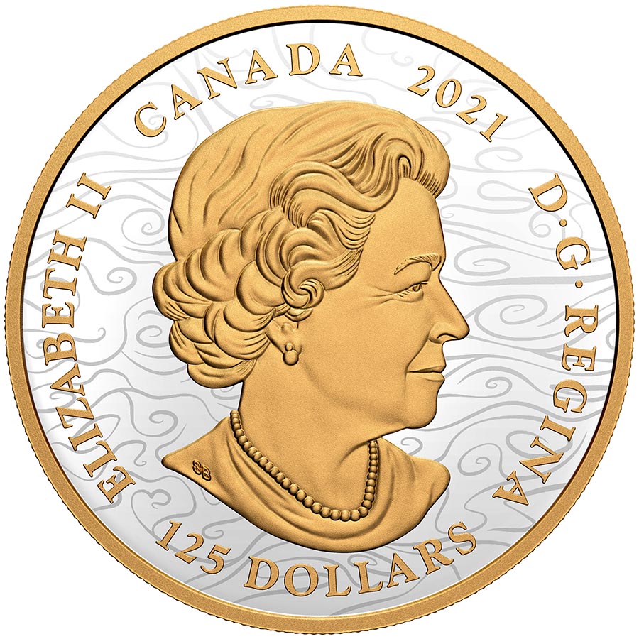 Inspired by the Chinese legend of The Carp and the Dragon Gate, the selectively gold-plated reverse design by Canadian artist Simon Ng represents the dramatic moment when the carp has overcome adversity and is transformed into a dragon. Triumphant, the golden dragon-headed fish is the image of strength as it rises up from the tumbling waters and spray of the waterfall obstacle. The selectively gold-plated obverse features the effigy of Her Majesty Queen Elizabeth II by Susanna Blunt.