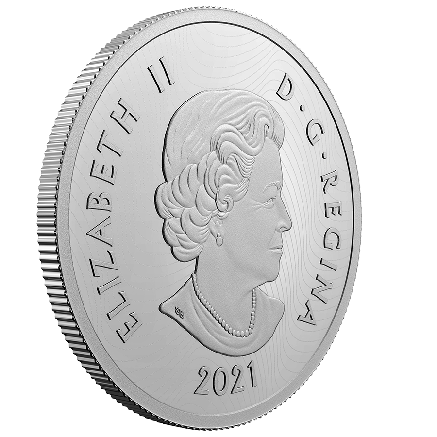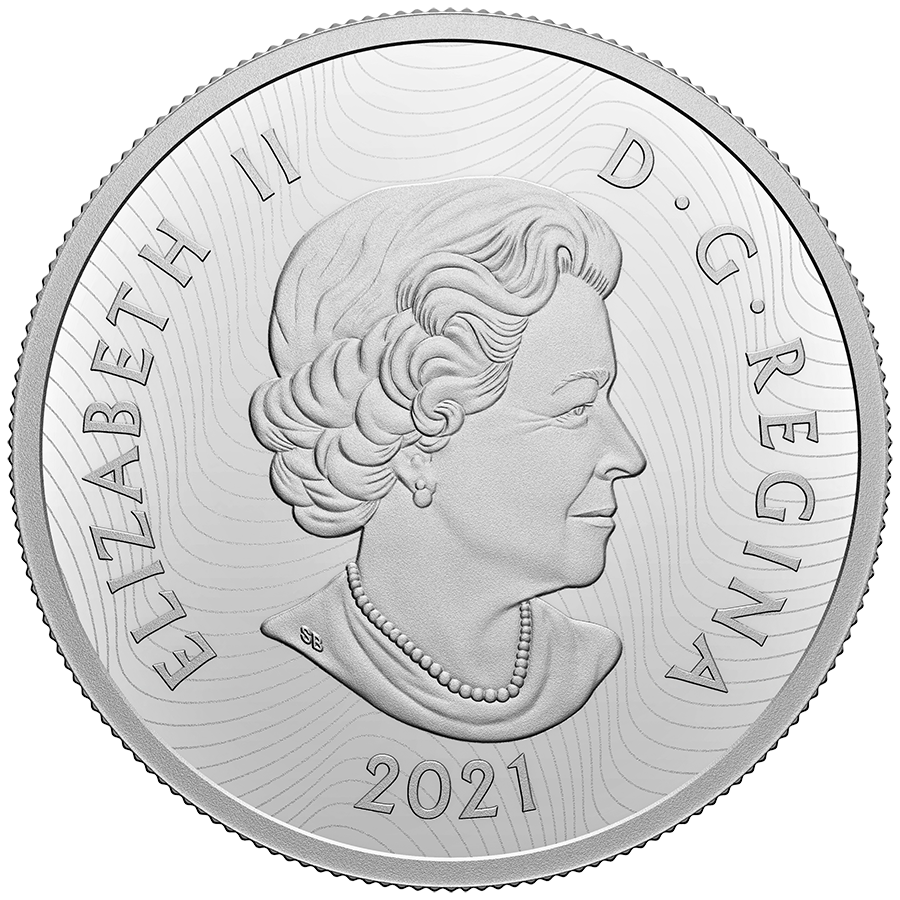 Designed by artist Maurade Baynton, the reverse features a selectively coloured, close-up view of the plains bison (Bison bison bison). The finely engraved backdrop takes you into the heart of the Canadian Prairies and represents the traditional grassland habitat of this iconic Canadian species. The obverse features the effigy of Her Majesty Queen Elizabeth II by Susanna Blunt.