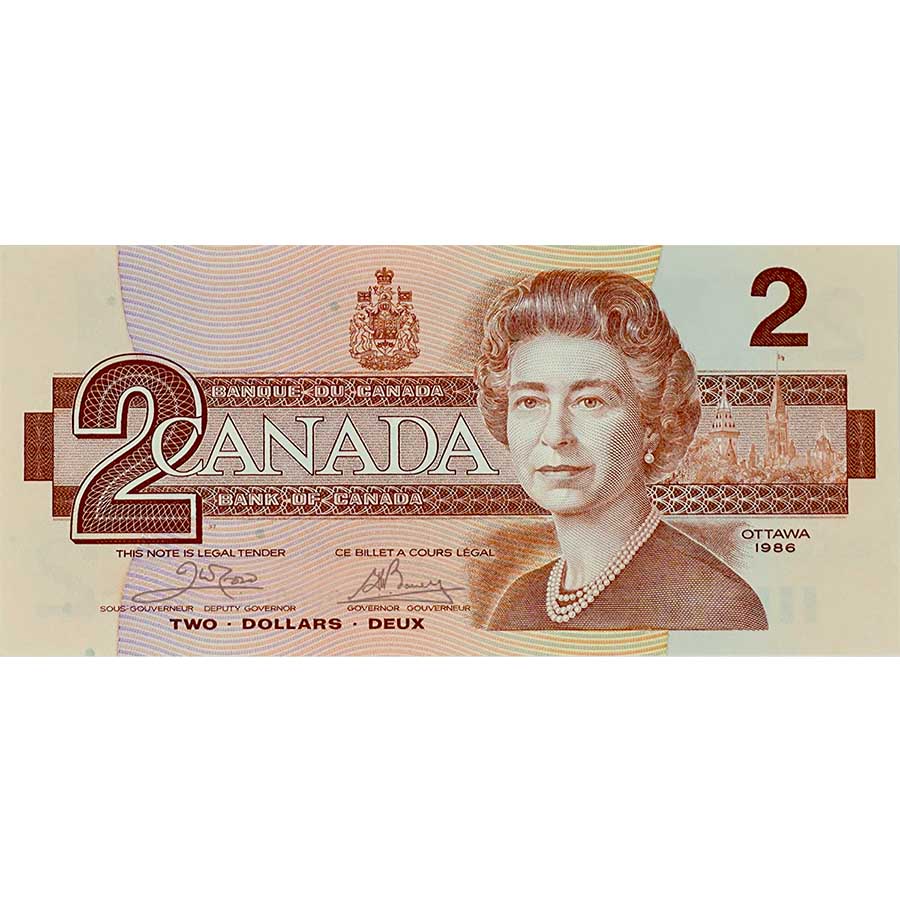 - Includes a $2 replacement (BRX) bank note. The uncirculated $2 bill is from the Bank of Canada’s 1986 Birds of Canada series