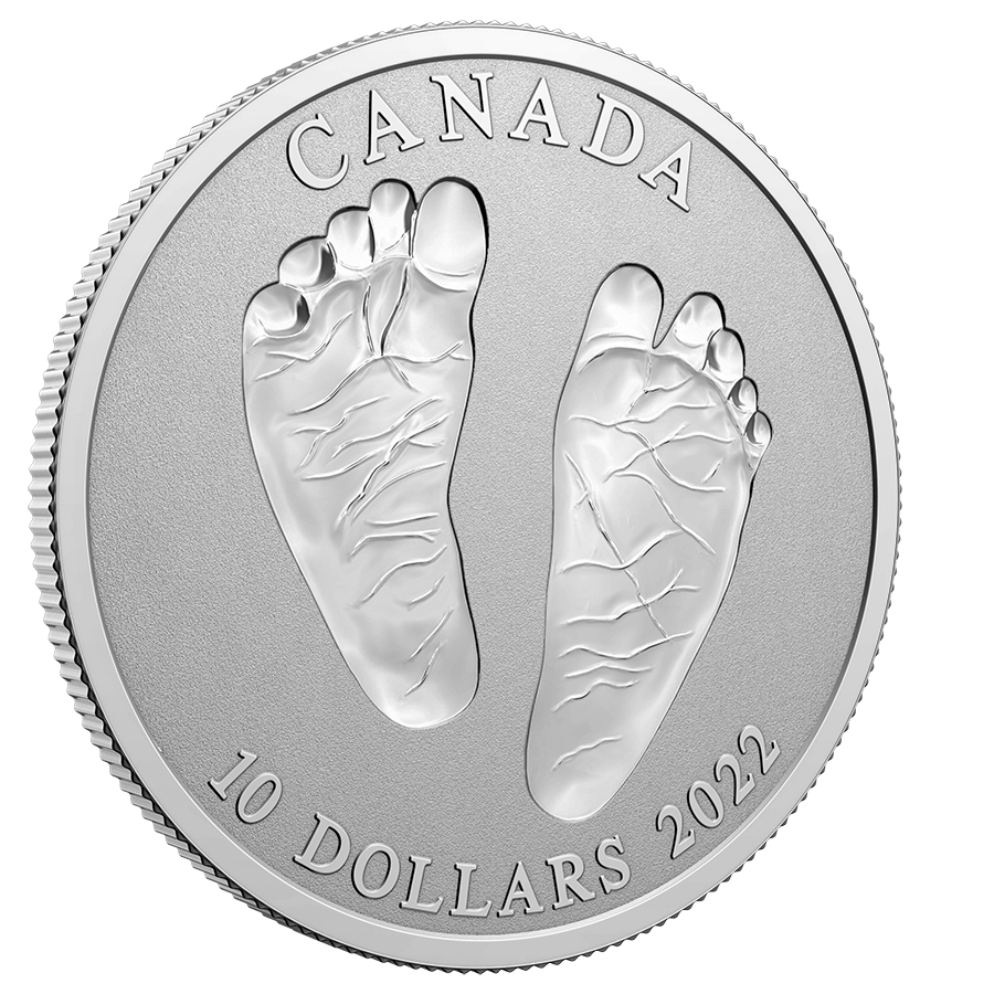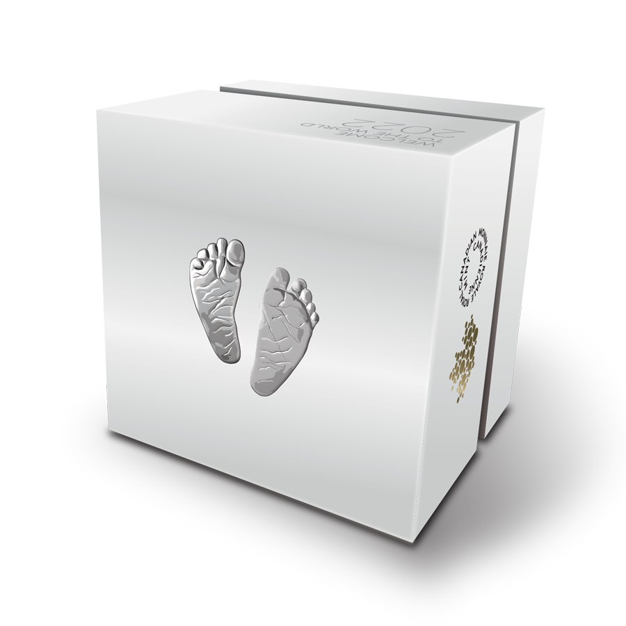 This endearing coin captures the essence of that happy time with a heart-warming design of baby feet struck incuse into the coin, like footprints in the sand. But unlike sand that shifts and fades with time, these imprints are fine silver and will last forever! Celebrate and preserve those first loving memories with this charming and timeless keepsake. It’s presented in a beautiful keepsake box, and includes a specially designed certificate of authenticity with space to add your own personalized message!