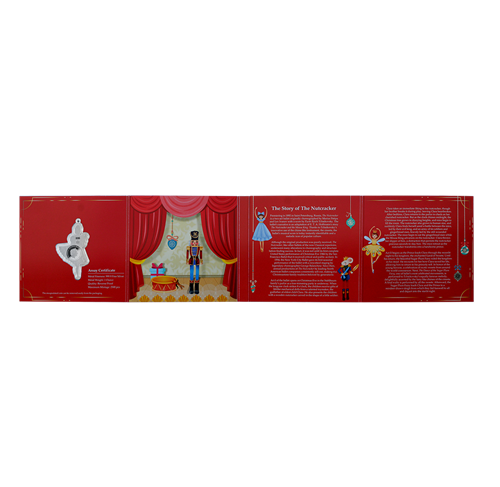 This second coin is shaped and coloured to resemble the ballet’s heroine, Clara, and is housed in a capsule that transforms it into a hanging ornament.