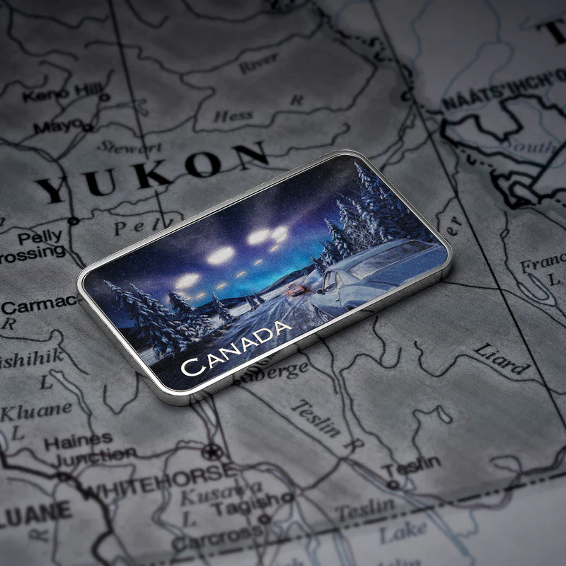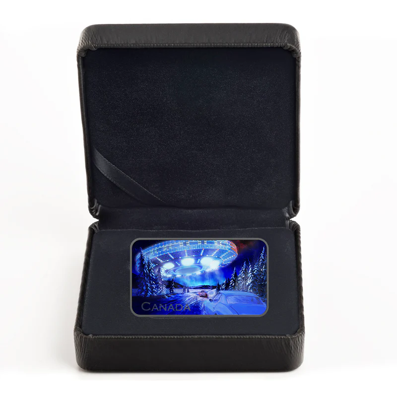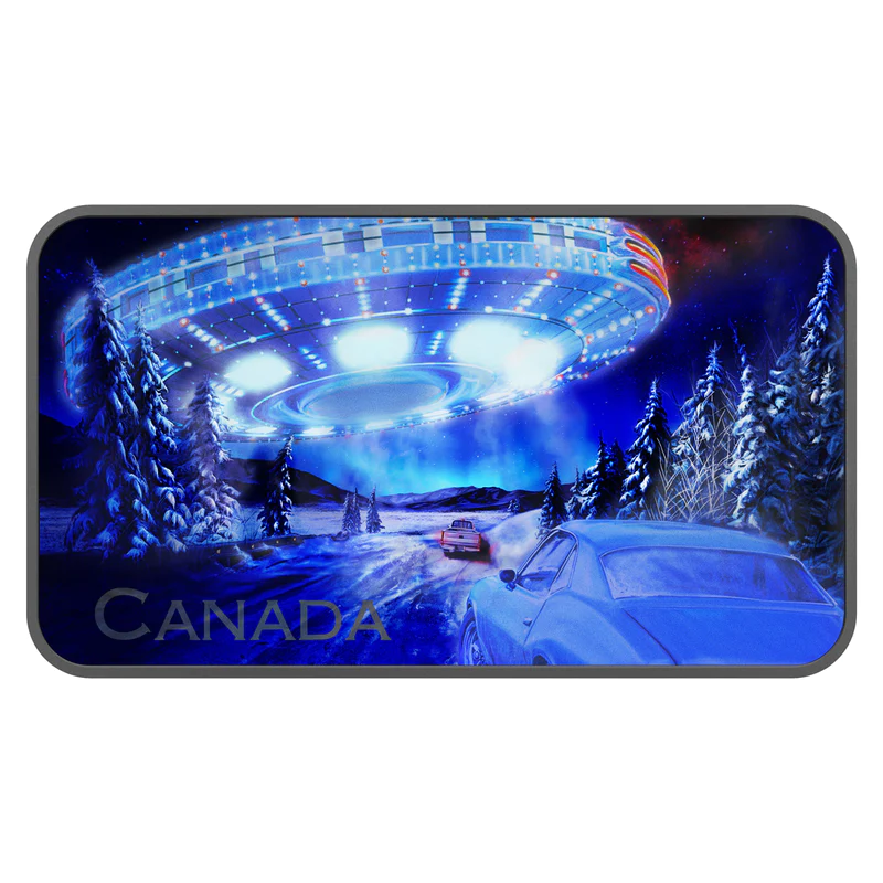 Our fascination with UFOs and unexplained phenomena is featured on this 2022 $20 Yukon Encounter fine silver coin, which transforms as select elements of the full colour image luminesce with the included black light flashlight. This is the fifth coin in an ongoing annual series, with previous issues selling out immediately and becoming extremely difficult to obtain in the secondary market.