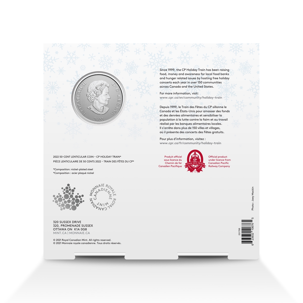 It’s a magical moment that many look forward to each year—the moment the CP Holiday Train comes rolling in! This large format lenticular 50 cent coin captures the thrill of an annual tradition that raises spirits and raises funds to help those in need. Decked out in colourful lights and festive decorations, the CP Holiday Train is greeted by smiling crowds at every stop, where music and community spirit come together for a whistle-stop concert that benefits local food banks— even when the show must go online. Tilt the coin to see the train lit up at night. Mintage is limited to 100,000.