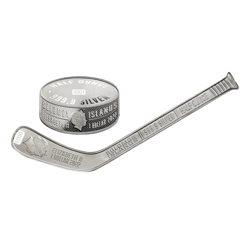 Treasure our sports heritage; hockey, baseball, golf and curling. These sports are played around the world. In this four part series from the Solomon Islands, each set contains two half-ounce pure silver coins shaped like the equipment needed to play each sport: a hockey stick and puck; a baseball bat and ball; a golf club bag and ball; and a curling stone and broom.