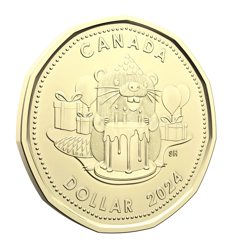 The star of the 2024 Birthday Gift Card Set is the $1 coin, featuring an enchanting reverse design crafted by renowned Canadian artist Steve Hepburn. The design showcases a cheerful beaver adorned with party gifts and balloons, sporting a festive party hat. The beaver is captured in the midst of making a birthday wish, ready to blow out the candles atop a celebratory cake. The obverse of the coin proudly displays the effigy of His Majesty King Charles III, skillfully crafted by Canadian artist Steven Rosati.