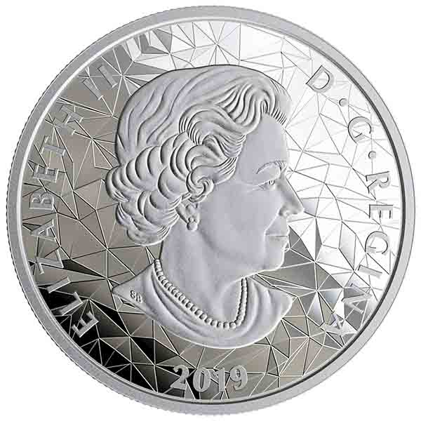 The reverse sculpture by Claude Thivierge features a multifaceted wolf head built out of 435 polygons. The three-dimensional form protrudes from the flat coin, invoking both nature and geometry in its execution. The Extraordinarily High Relief plays an integral part of the design, introducing the coin as the first of its kind in the world – sharp, brilliant and doing away with the conventional flatness of minting.