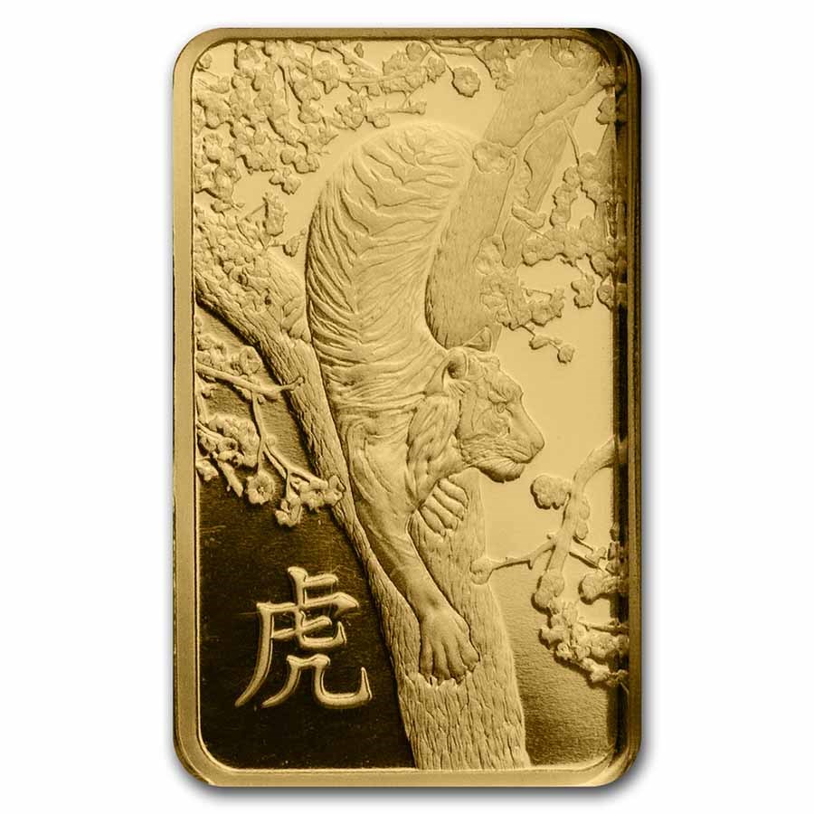 - 5 gram Gold Bar 2022 – PAMP Suisse Year of the Tiger (In Assay): Complementing the silver coin is the 5 gram Gold Bar 2022 – PAMP Suisse Year of the Tiger. Encased in an assay card, this gold bar stands as a tribute to the Year of the Tiger, an embodiment of courage and vitality. Crafted by PAMP Suisse, a distinguished name in precious metal refinement, this bar exudes exceptional quality and craftsmanship. Weighing 5 grams of pure gold, it reflects not only the tiger’s grace but also the enduring value of gold as an investment.
