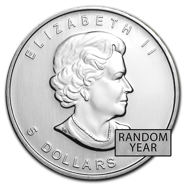 About 1 Oz Canadian Silver Maple Leaf Coin (Random Year/Backdated)