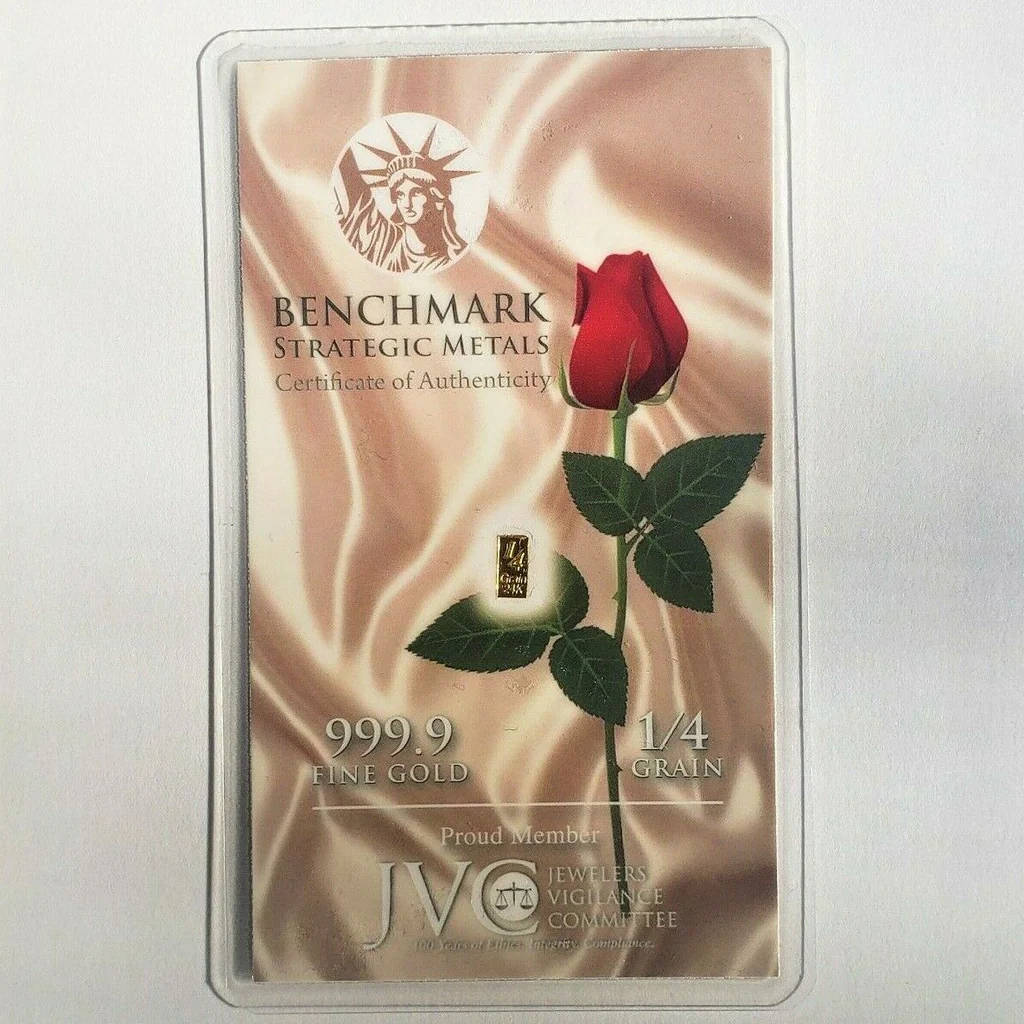 Whether you’re a seasoned stacker or a beginner just dipping your toe into precious metals, the Satin Red Rose 1/4 Grain Gold Bar is a smart, beautiful, and symbolic way to say: “I believe in the power of gold.”